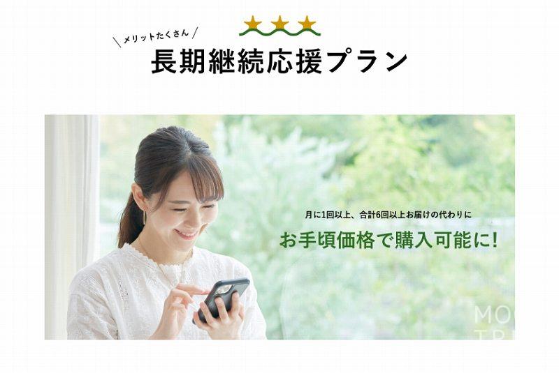 「長期継続応援プラン」は‶月に1回以上・合計6回以上〟注文することを確約することで、割引が受けられるプランです。