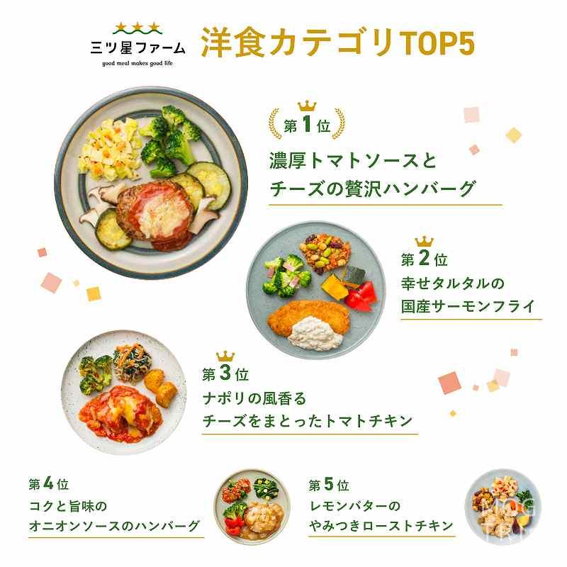 三ツ星ファームは、レンジで加熱するだけで手軽に栄養バランスの取れたおいしい食事がとれる冷凍おかずの定期便サービスです。管理栄養士監修の〝原則 カロリー350kcal以下・糖質25g以下・タンパク質15g以上(おかずプレートに限る、一部メニューを除く)〟のメニューを125種類以上も展開していて、仕事や家事・育児で食事を作る時間が惜しいと感じている30~40代女性を中心に 幅広い年齢の方に支持されています。